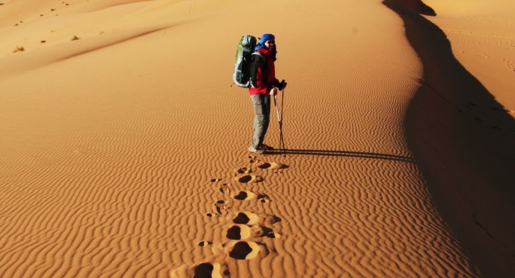 Departure from the fixed camp with the nomadic team. We will walk at the pace of the camel caravan, leaving the palm trees behind us. It is the sea of the desert that begins. We will pass through some sites of ancient settlements, where you can find pieces of pottery, traces of the ancestral civilizations that inhabited the desert. After this desert trek, lunch will be taken in the shade of a tree, accompanied by tea.